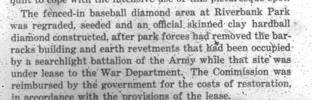 The park continued to be a site for play and relaxation for many years. During WWII from 1941-1944 the army appropriated the park using it as an air defense contingent for the Coast Artillery, building barracks in the park.\