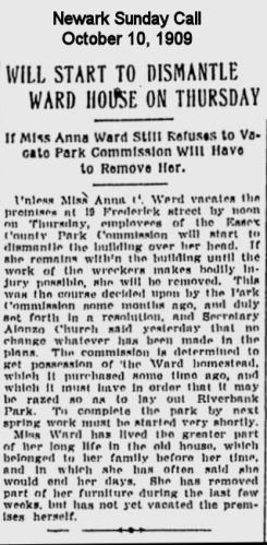 But there was one hurdle to building the park. Ms. Anna Ward lived in the land slated for the park and she did not want to move! Finally, in October 1909 Anna Ward was forced out of her house on Frederick Street and the contract to build the park was given to the JF Shanley company.